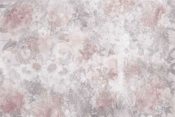 La combinazione di morbidi toni pastello e sottili motivi floreali rende questo design una scelta perfetta per un'atmosfera elegante e serena in casa. Le tonalità tenui di rosa e grigio conferiscono un aspetto raffinato, mentre le delicate strutture floreali creano un'esperienza romantica, quasi eterea. Le sovrapposizioni e gli effetti trasparenti donano al motivo un carattere sognante, come se si trovasse in un giardino incantato e nebbioso.