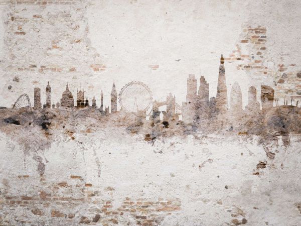 Uno skyline ad acquerello di Londra in stile urbano. Lo skyline è disponibile con diversi sfondi.