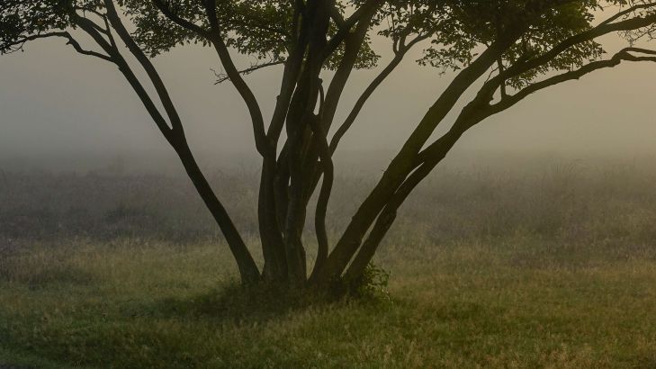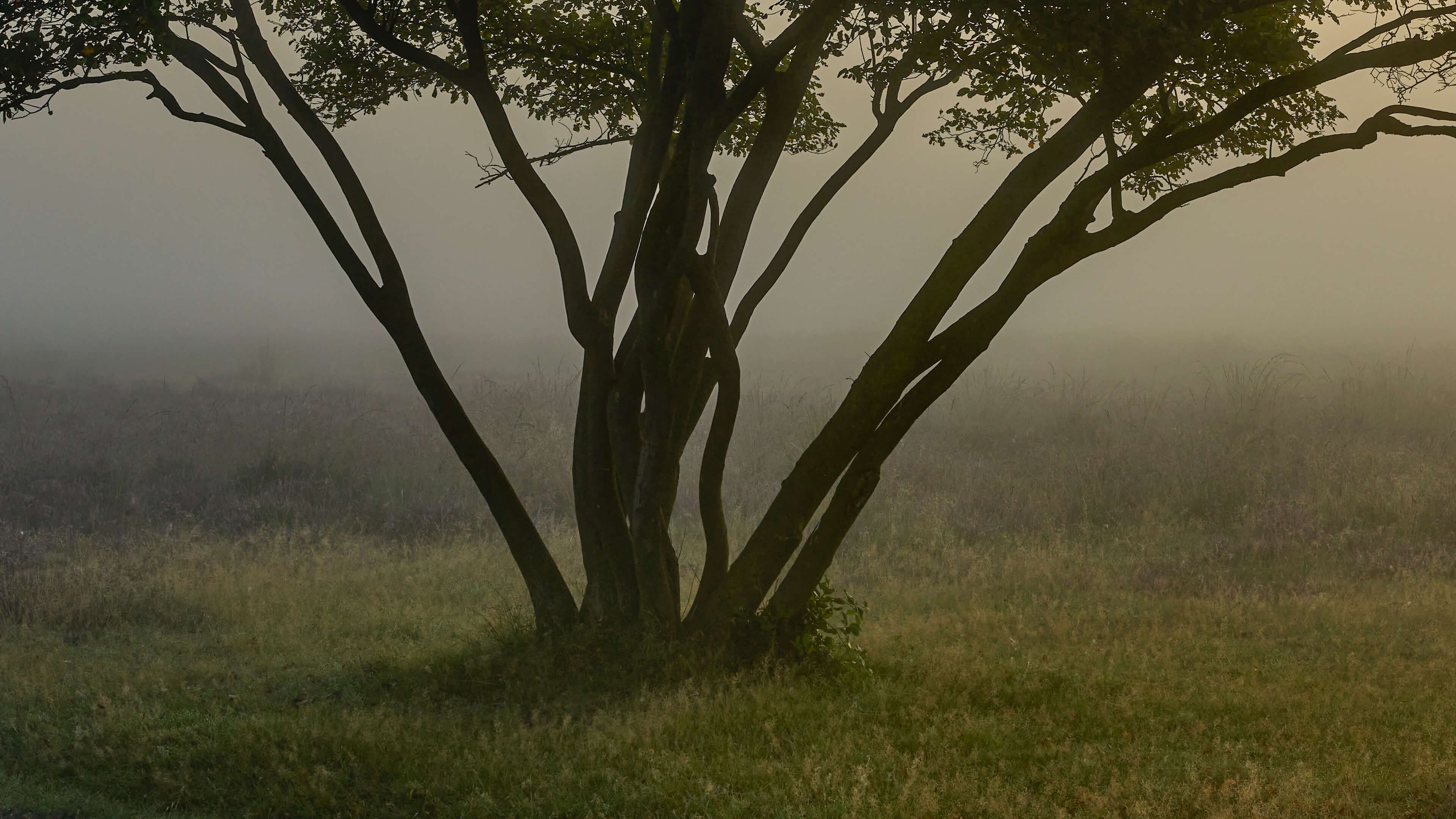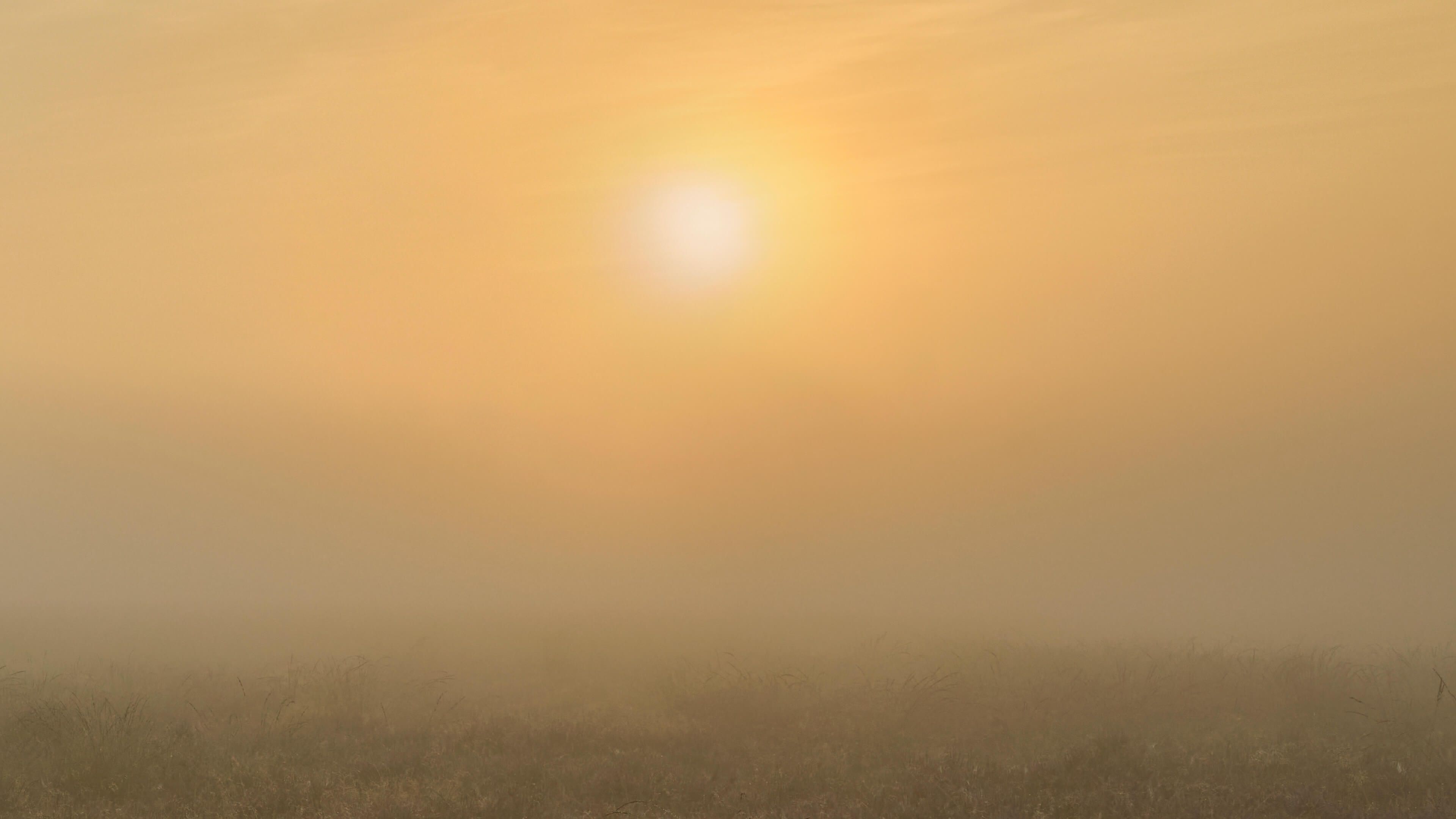 Alba nebbiosa sulla brughiera. Combinate questa carta da parati con foto nella vostra casa per un'atmosfera ancora maggiore.