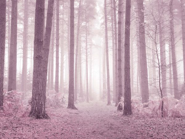 Alberi nella nebbia. A causa della nebbia, la foresta ha un aspetto misterioso.
