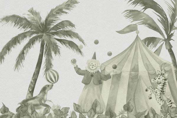 Carta da parati - Allegri animali da circo in verde