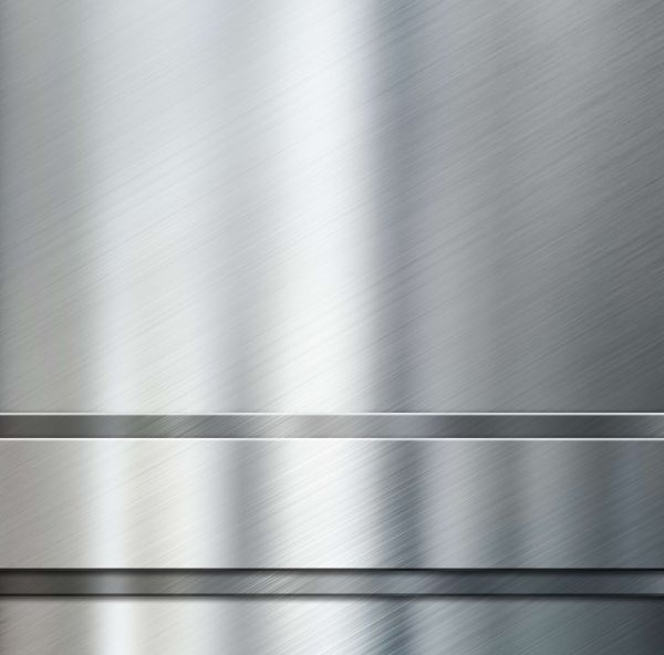 Carta da parati fotografica con strisce metalliche su sfondo in alluminio spazzolato.