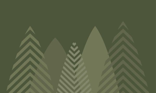 Sfondo verde scuro con un mix di montagne a strisce e colorate in diverse tonalità di verde.