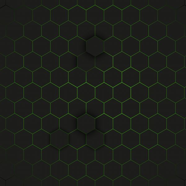 Un'illustrazione di un alveare astratto nei colori nero e verde.