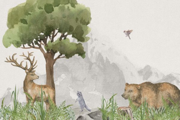 Carta da parati - Animali della foresta vicino a una montagna
