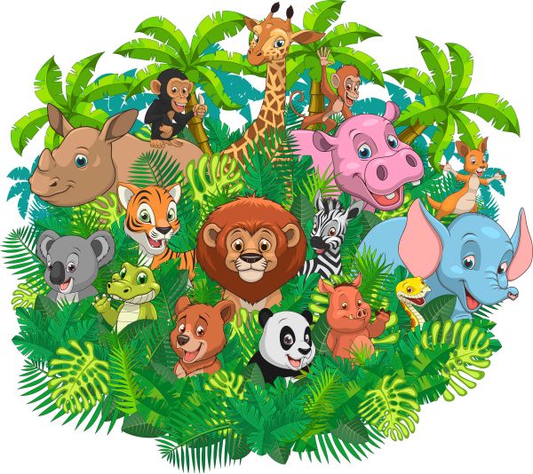 Carta da parati con tanti animali diversi per i bambini. Da combinare nella stanza dei bambini.
