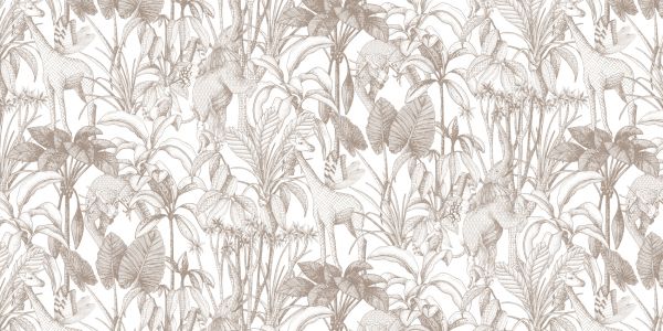 Carta da parati - Animali tra le palme taupe
