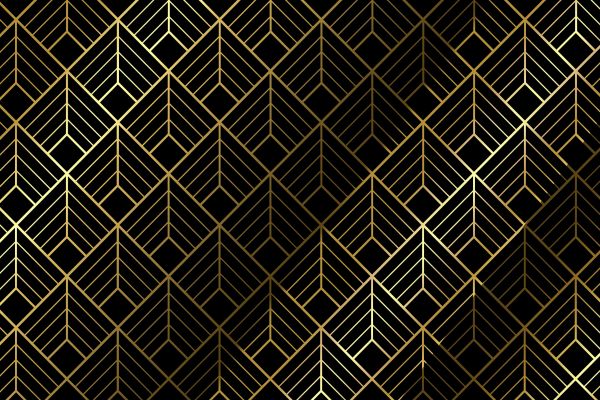 Un motivo art déco in nero e oro. I colori di questa carta da parati conferiscono alla stanza un aspetto unico.