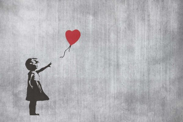 Banksy - Balloon girl, grey concrete in diversi materiali
