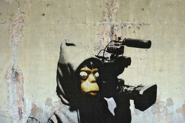 Banksy - ETTGS monkey, raw concrete...