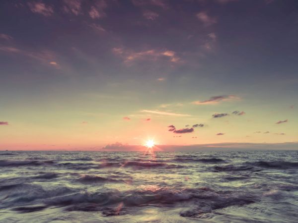 Un bel tramonto sulla spiaggia. Il cielo ha dei bei colori brillanti.