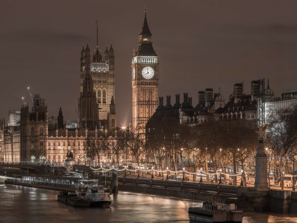Big Ben e Westminster Abby la sera. Combinate questa carta da parati fotografica nel vostro salotto o camera da letto.