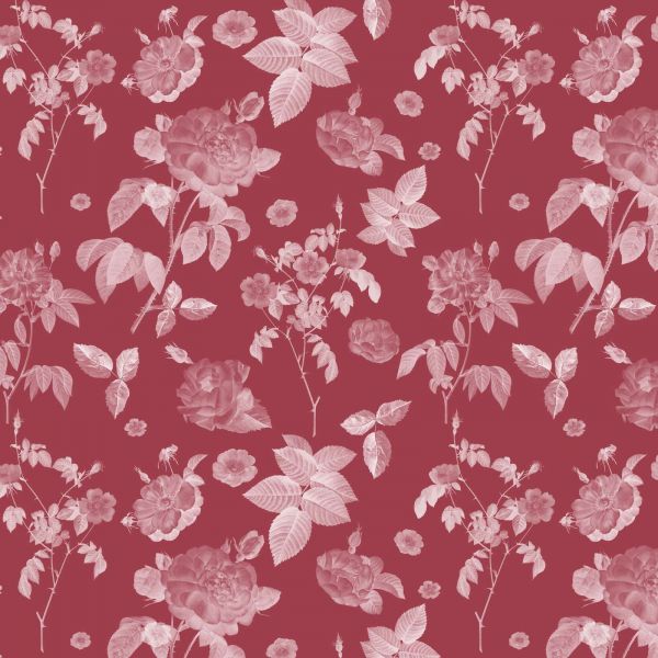 I fiori sono disposti elegantemente su uno sfondo ricco e di un rosso profondo, creando un effetto caldo e accogliente. I sottili contrasti nel motivo aggiungono profondità senza essere opprimenti, rendendolo perfetto per spazi sia moderni che tradizionali.