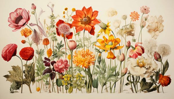 A modern twist on the botanic illustration style. A swirl of flowers to bring magic in your room…