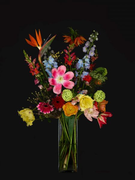 Bouquet di fiori in vaso di vetro in diversi materiali
