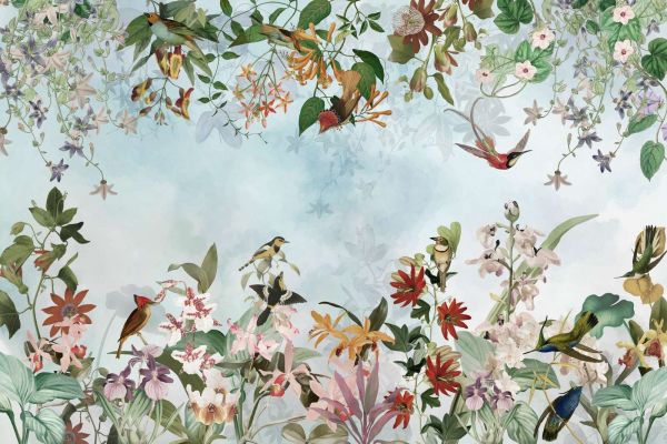 Un diseño refinado que irradia una atmósfera serena con una combinación de naturaleza, pájaros, flores y colores delicados. Perfecto para darle a cualquier habitación un aspecto vibrante pero relajante.