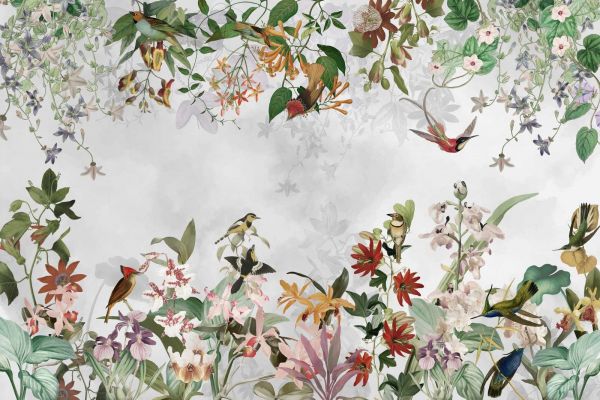 Un diseño refinado que irradia una atmósfera serena con una combinación de naturaleza, pájaros, flores y colores delicados. Perfecto para darle a cualquier habitación un aspecto vibrante pero relajante.