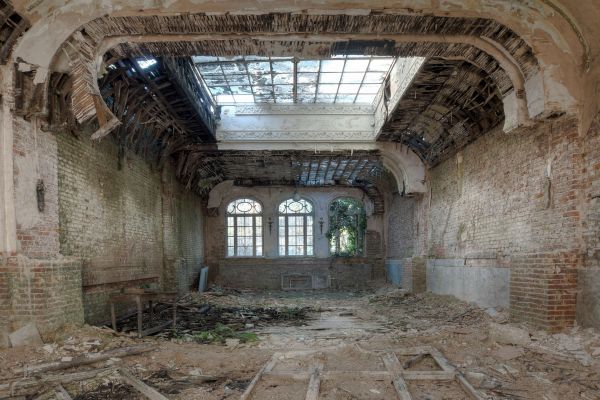 Una volta un grande hotel con una bella vista su un fiume. Dimenticato per anni e ora demolito.