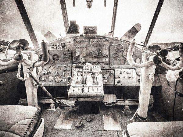 Cabina di pilotaggio di un aereo in seppia in diversi materiali