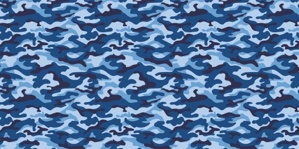 Carta da parati blu con un motivo mimetico in diverse belle tonalità di blu.