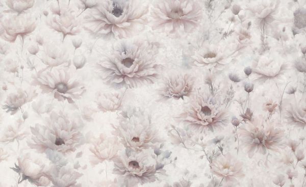 Un motivo floreale sognante e raffinato in morbide tonalità pastello. I grandi fiori ariosi sbocciano in sottili tonalità di crema, rosa e lavanda su uno sfondo chiaro. Le pennellate simili a acquerello conferiscono all'insieme un aspetto pittorico ed elegante, perfetto per un'atmosfera serena e romantica.