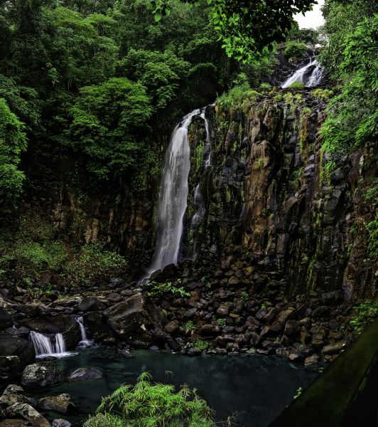 La cascata di Millaa Millaa in Australia. Questa cascata finisce in un lago blu chiaro.