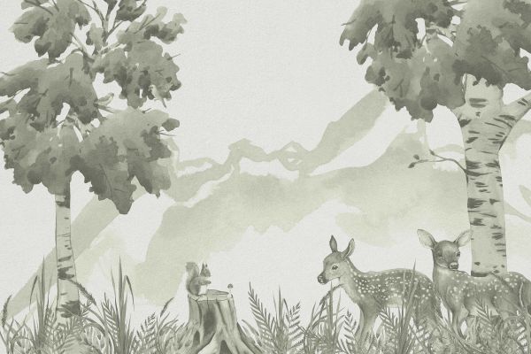 Due simpatici cervi che esplorano la foresta nel colore verde.
