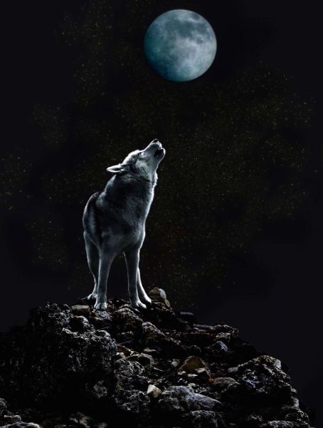 Su una roccia solitaria che si affaccia sulla notte, un lupo ulula alla luna piena. Questa potente immagine simboleggia il richiamo della natura selvaggia e il legame senza tempo tra natura e animale. Il cielo stellato e la luce argentea della luna aggiungono un'atmosfera mistica a questa scena antica.