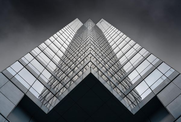 Sfondo fotografico della vista dal basso di un edificio molto alto. Combinate il tutto nel soggiorno.