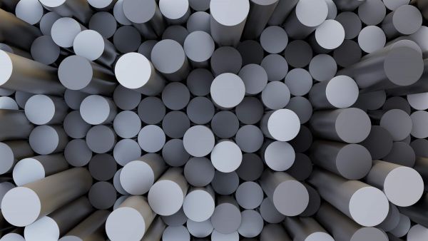 Un'illustrazione astratta in 3D di cilindri colorati.