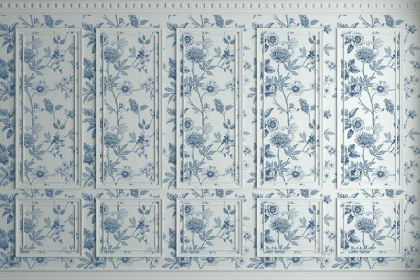 Classico motivo floreale bianco e blu per un'atmosfera elegante e senza tempo.