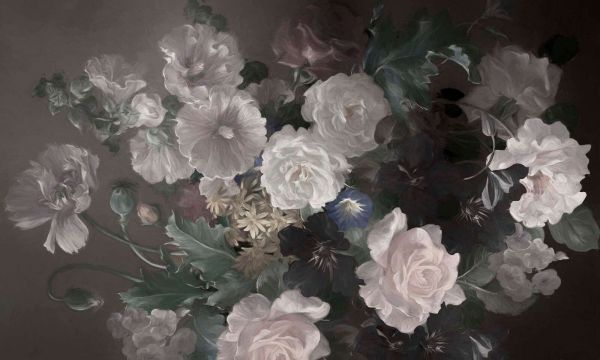 Questo incantevole design floreale emana eleganza classica e fascino senza tempo. La ricca composizione di rose, papaveri e altri fiori in morbidi toni crema, blush e pastello contrasta splendidamente con lo sfondo profondo e scuro, creando un effetto drammatico e suggestivo. Le sottili pennellate e la leggera sfocatura conferiscono al tutto un aspetto pittorico, quasi onirico, ispirato ai classici nature morte del periodo barocco. Grazie alla calda e nostalgica palette di colori, questo design si adatta perfettamente a un interno classico, vintage o romantico. Si combina splendidamente con materiali ricchi come velluto, legno scuro e accenti in ottone, creando un aspetto lussuoso e raffinato. In un interno moderno, questo design può costituire un contrasto notevole con toni neutri e linee pulite, creando un effetto elegante e artistico. I fiori lussureggianti e le tonalità profonde rendono questo design particolarmente adatto per spazi come il soggiorno, la camera da letto o una elegante sala da pranzo. Porta un tocco di bellezza classica e raffinatezza nello spazio, mentre lo sfondo scuro crea un'atmosfera intima e calda. Per un aspetto extra lussuoso, accessori come cornici dorate, vasi antichi e illuminazione soffusa possono rafforzare l'atmosfera romantica e classica. Questo design senza tempo porta in vita la raffinatezza di un dipinto e costituisce un bellissimo punto focale in ogni interno.
