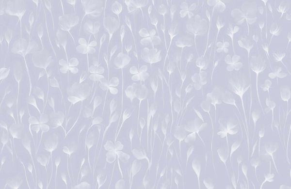 Un delicato e raffinato motivo floreale in sfumature di blu nebbioso. I fiori delicati e i gambi eleganti sembrano quasi fluttuare su uno sfondo leggero e nebbioso, creando un'atmosfera calmante ed elegante. Perfetto per un interno rilassante e senza tempo.