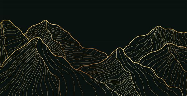 Colline dorate su uno sfondo nero. I colori oro e nero danno a questa carta da parati fotografica un aspetto lussuoso.