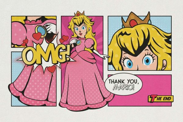 Un design pop art colorato con una principessa in uno stile comico e giocoso. I colori vivaci e gli elementi allegri creano un'atmosfera energica e positiva, perfetta per gli amanti della pop art e delle fiabe.