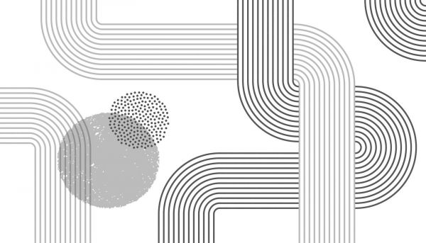 Contrasti dinamici definiscono questo disegno, dove le linee rigorose in bianco e nero spiccano sugli elementi morbidi e circolari. È una composizione visivamente intrigante che emana eleganza moderna e forza grafica.