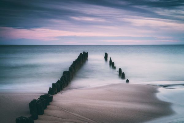 Bella immagine di pennelli nel Mar Baltico con un cielo fioco.