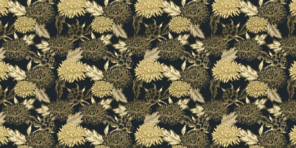 Crisantemi in stile cinese su carta da parati foto. I colori danno a questa carta da parati fotografica un aspetto lussuoso.
