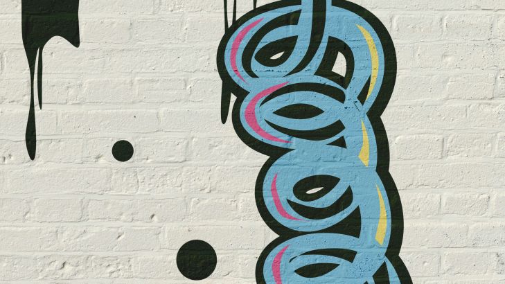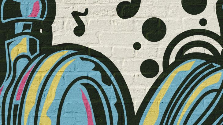 Graffiti di una cuffia su un muro bianco. Combina questa carta da parati fotografica nella tua stanza e crea ancora più atmosfera nella tua casa.