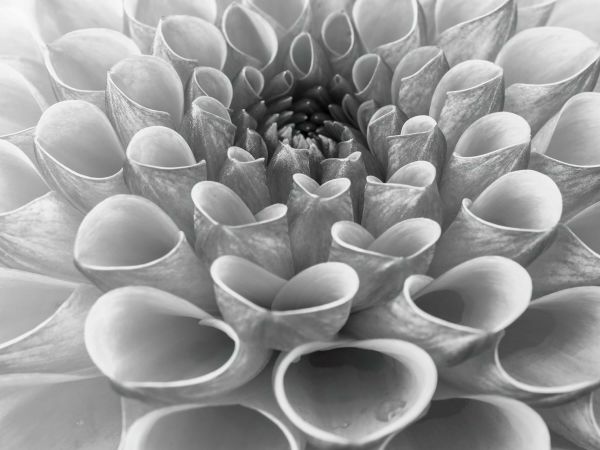 Primo piano di una Dalia in bianco e nero.