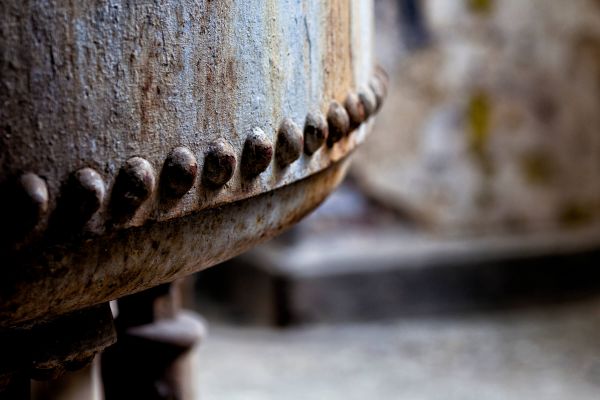 Dettaglio di una caldaia a vapore arrugginita