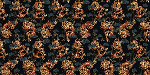 Draghi tradizionali cinesi su un motivo. I colori dei draghi creano un'atmosfera più calda nella vostra casa.