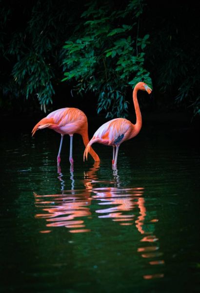 Carta da parati con due fenicotteri che camminano nell'acqua