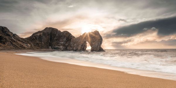 Come un dipinto in cui la natura determina le pennellate, questa scena offre uno scorcio della maestosità della costa. L'arco di roccia funge da porta naturale attraverso la quale gli ultimi raggi del sole illuminano le onde danzanti. È un momento di calma e forza, catturato in un mondo in costante movimento.