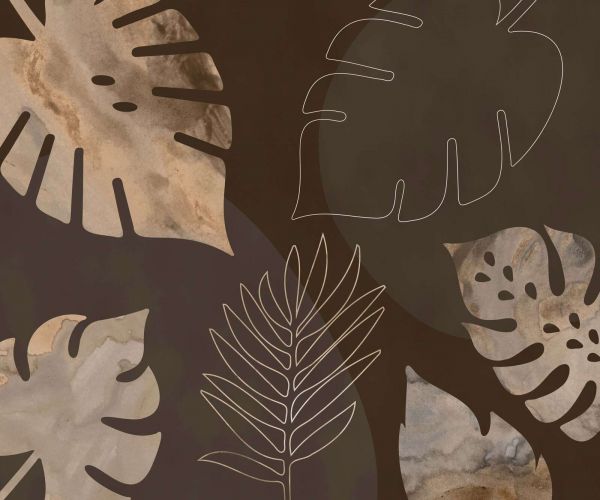 Un design botanico potente in profonde tonalità marrone cioccolato con sottili disegni a linea e forme organiche. Caldo, moderno e decisamente elegante.