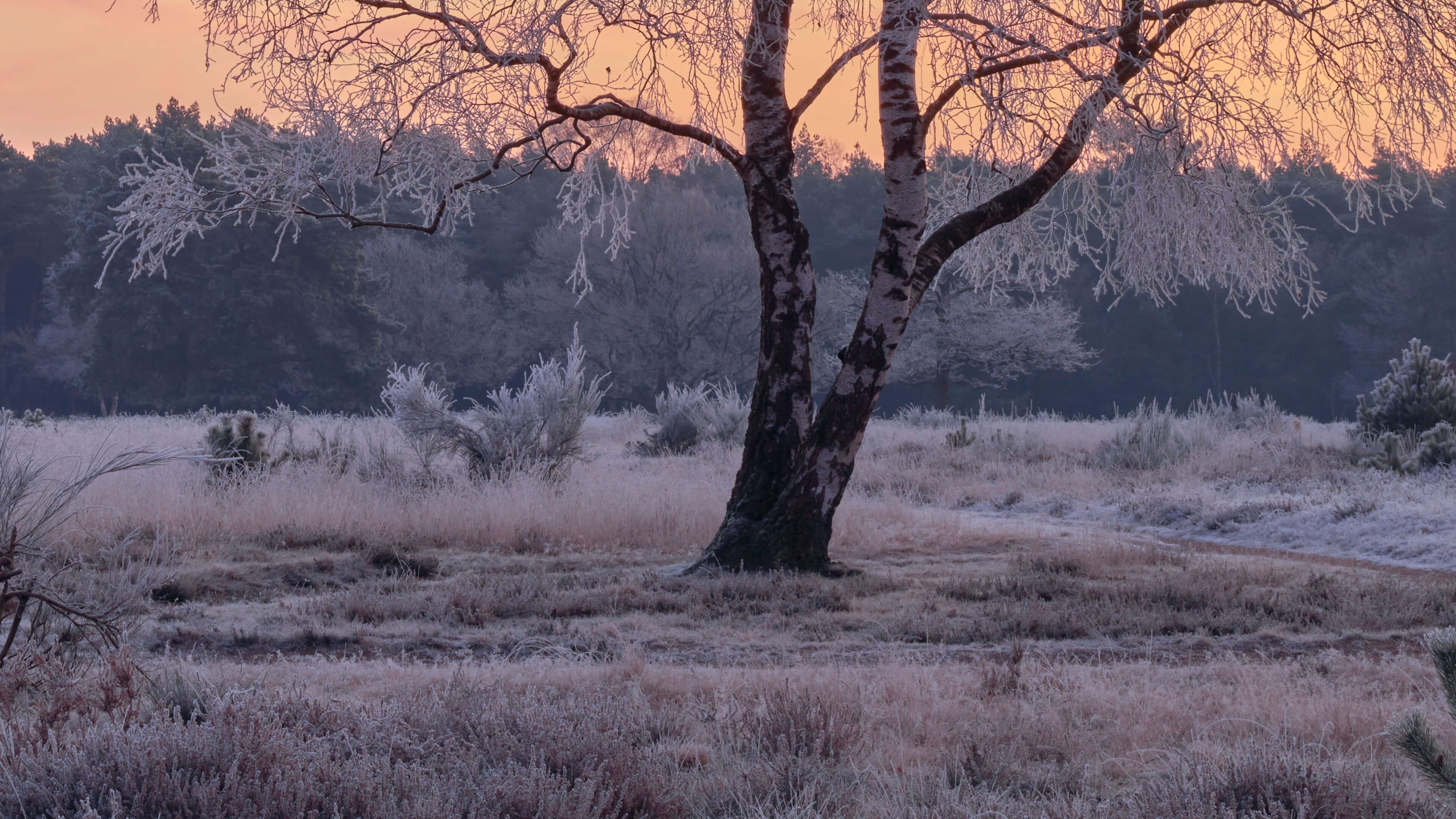Bellissima alba sulla brughiera ghiacciata. Combinate questa carta da parati con foto nella vostra casa per un'atmosfera ancora maggiore.