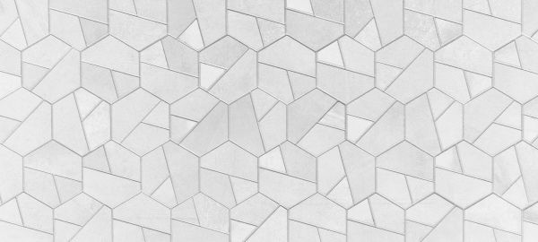 Carta da parati fotografica di un mosaico esagonale astratto grigio/bianco.