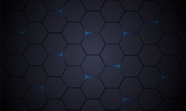 Esagoni grigio scuro con uno sfondo blu luminoso. Combina questa carta da parati con foto nella tua stanza per un'atmosfera ancora maggiore.