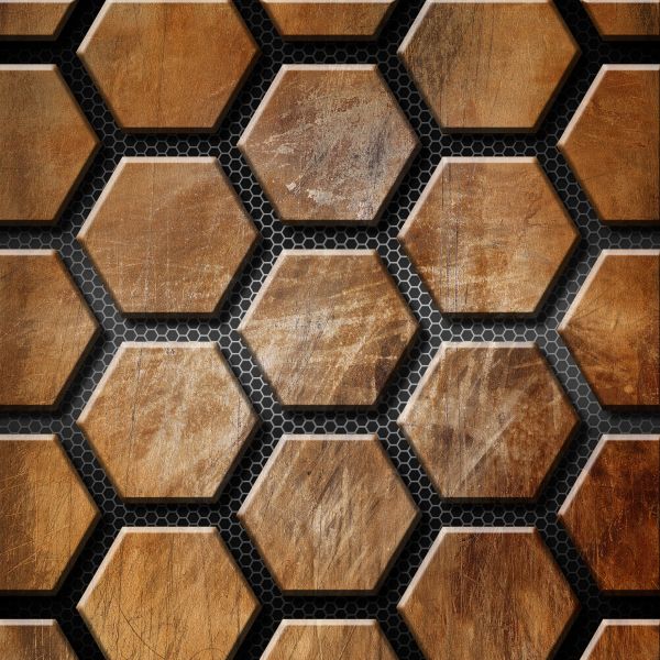 Sfondo fotografico di esagoni marroni con esagoni argentati sullo sfondo.