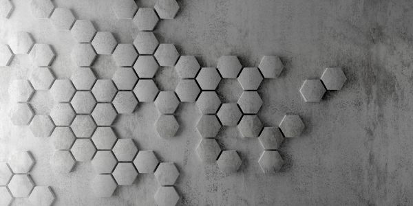 Esagoni moderni su cemento. Gli esagoni hanno un effetto 3D che fa sembrare che gli esagoni escano dal muro.
